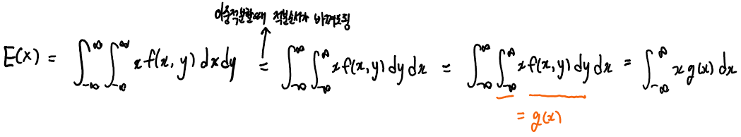 이렇게 주변분포를 이용해서 X만의 평균을 구할 수 있다.
