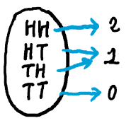 함수의 개념으로 생각해보자면, 표본점이나 사상을 수치에 대응시킨 것이 확률변수이다.