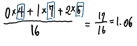 X가 가질 수 있는 값( ex.0 , 1, 2) 곱하기 '전체 시행 횟수(16번) 중 X가 가질수 있는 그 값이 몇번 나왔는가?' 의 합으로