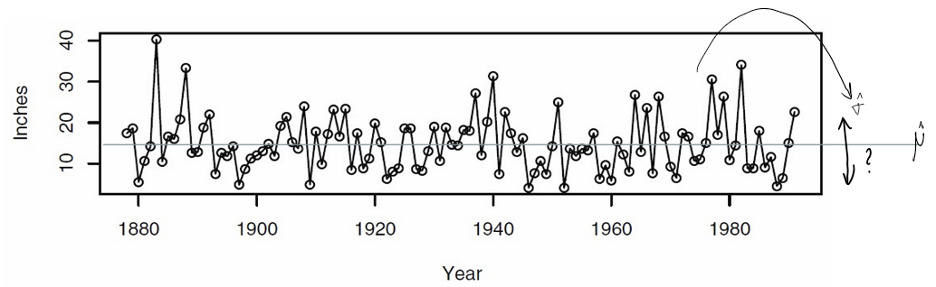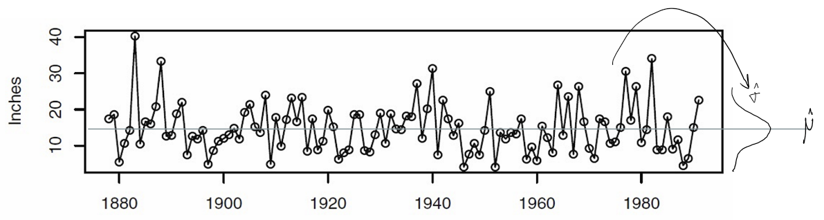 주어진 데이터의 기간 이후로 미래의 강수량값은 어떻게 될 것 인지 생각해보자.