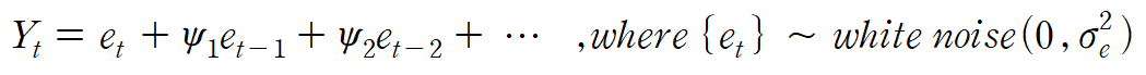 t시점의 확률변수 Yt는 t시점의 white noise, t시점 이전의 white noise 값들을 선형결합하여 만들어졌다.