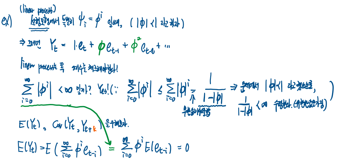 위와 같이 white noise의 선형결합으로 정의되는 확률과정을 선형과정(Linear process)라고 한다.