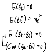 각시점의 확률변수 et, et-1, et-2, 의 평균은 0이며 각 시점의 확률변수의 분산도 일정하다.