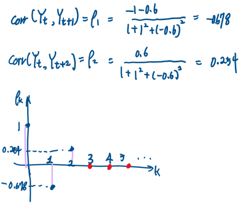 ACF의 의미를 생각해보기 위해 예제로 MA(2) 모형을 생각해보기로 한다.