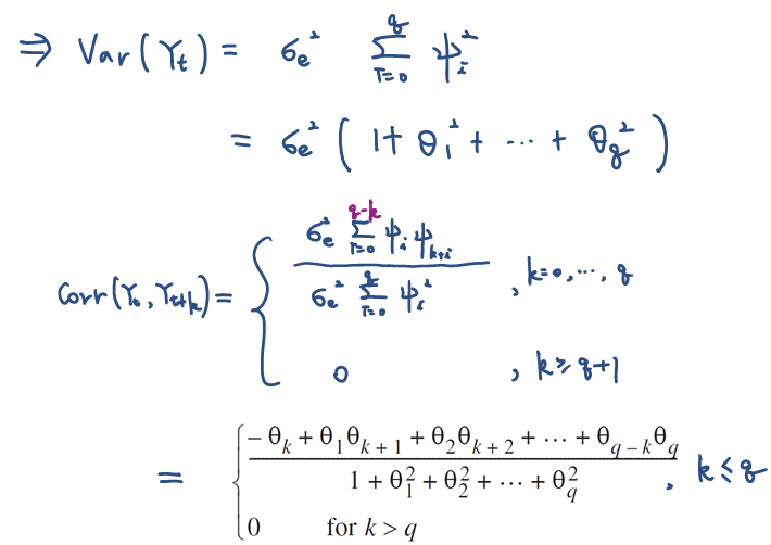 t-q번째 백색잡음 이후의 백색잡음의 계수들을 다 0으로 생각해볼수 있다는점을 생각해보면,