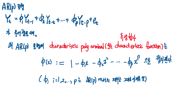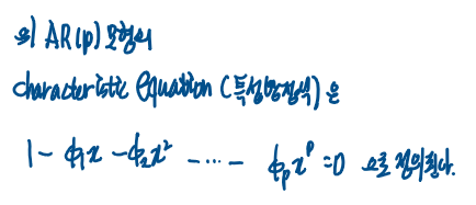 이 상황에서 AR(p) 모형의 특성방정식은 다음과 같이 정의된다.