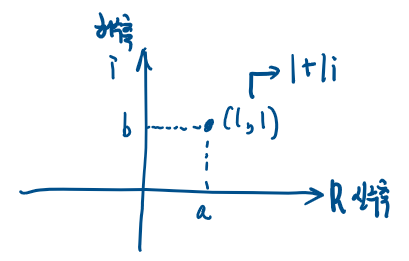 그렇다면 해당 점은 복소수 하나인 1+1i를 가리킨다.