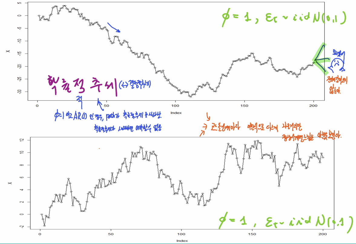 즉 모형식에서 Φ 에 따라서 내가 관찰하려고하는 AR 과정의 성질이 달라진다.