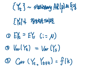 AR(p) 모형에서 만든 확률과정이 정상성 조건을 만족한다.