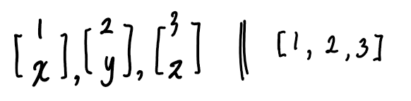 왼쪽의 경우 , 세로로 배열된 벡터를 열벡터라고 하고