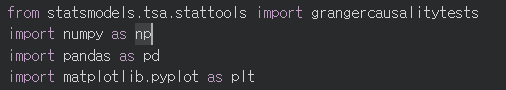 파이썬을 통해 간단하게 granger casuality 를 검정해본다.