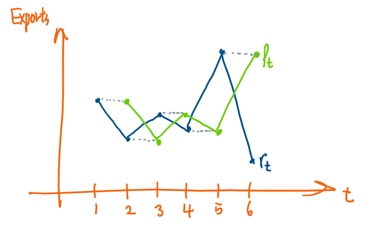 이 상황에서 두개의 시계열(two time series)를 생각해 볼 수 있는데