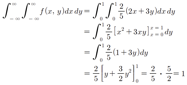 즉 확률은 부피가 되며 구하는 방법은 이중적분을 통해 구하면 된다.